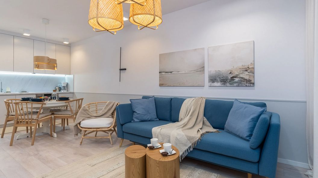 Wyjątkowy apartament mieści się w ekskluzywnym kompleksie wypoczynkowym przy ulicy Spadochroniarzy, w samym sercu Dziwnowa. To spokojna, nadmorska miejscowość zlokalizowana na Wyspie Wolin otoczona Zalewem Kamieńskim i Zatoką Wrzosowską. Nowoczesny obiekt położony nad brzegiem rzeki Dziwnej, oferuje doskonały relaks dla całej rodziny. Nasi goście mają możliwość skorzystania ze strefy wellness, w której znajduje się kryty basen z brodzikiem dla dzieci, jacuzzi oraz sauny. Osoby podróżujące z pociechami, z pewnością docenią również zewnętrzny plac zabaw oraz atrakcyjnie zaaranżowane tereny zielone. Spokojne otoczenie zbiorników wodnych i natury zachęca do długich, odprężających spacerów. Obiekt posiada doskonałą lokalizację - dotarcie do piaszczystej plaży w Dziwnowie trwa zaledwie 15 minut pieszo! Goście mogą tu w pełni korzystać z uroków miasta - dosłownie wszystko jest na wyciągnięcie ręki. Wystarczy kilka kroków, by trafić na restauracje ze smażoną rybką prosto z kutra, urokliwe kawiarnie i budki z lodami, czy goframi. Miłośnicy aktywnego wypoczynku mogą zwiedzić polskie wybrzeże korzystając z bezpośredniej ścieżki rowerowej do Dziwnówka, czy Międzywodzia. W dodatku, w sezonie letnim w Dziwnowie odbywają się atrakcyjne wydarzenia, które umilą czas wczasowiczów i pozwolą doświadczyć niezapomnianego klimatu wakacji nad Bałtykiem!