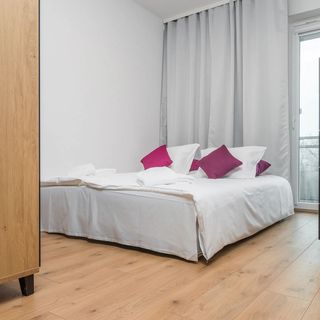 Przestronny apartament z balkonem ma możliwość zakwaterowania do 4 osób! Komfortowa przestrzeń apartamentu oferuje przestronny salon z aneksem kuchennym, sypialnie oraz łazienkę z prysznicem. Apartament wyróżnia się estetycznym i nowoczesnym wystrojem. Część dzienna wyposażona w wygodną sofę i TV stanowi doskonałe miejsce wypoczynku i relaksu. Dodatkowo w pełni wyposażony aneks kuchenny umożliwia wygodne przyrządzenie posiłków. Przestrzeń sypialni wypełnia wygodne łóżko, przestronna szafa oraz wyjście na balkon wyposażony w meble ogrodowe. Wysublimowany design oraz kompleksowe wyposażenie w niezbędne akcesoria kuchenne oraz łazienkowe gwarantują komfortowy i wyjątkowy pobyt we Wrocławiu.