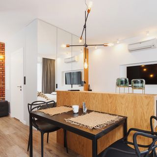 Wnętrze przeznaczone jest dla 2 osób i składa się z salonu z podwójnym łóżkiem, aneksu kuchennego oraz łazienki z prysznicem. Charakteru przestrzeni dodają ceglane ściany i drewniane detale. Do dyspozycji gości jest również balkon z widokiem na dziedziniec, wyposażony w stolik i krzesła.