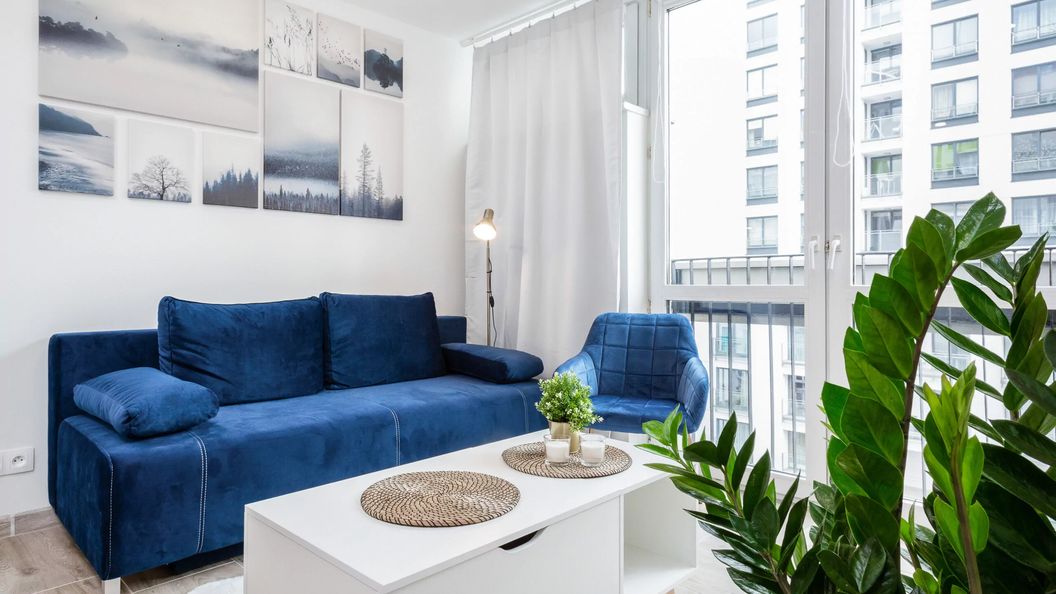 Apartament usytuowany na 9 piętrze budynku w centrum Warszawy przeznaczony jest dla 4 osób. Przestrzeń apartamentu oferuje sypialnię, przestronny salon z aneksem kuchennym oraz łazienkę z prysznicem. Apartament wyróżnia się nowoczesnym wystrojem i starannym wykończeniem wnętrza, podkreślającym jego wysoki standard. Nowoczesna aranżacja mieszkania i kompleksowe wyposażenie w niezbędne akcesoria kuchenne oraz łazienkowe gwarantują komfort pobytu. Mieszkanie urządzone starannie i gustownie, nowoczesny design oraz jasna kolorystyka zapewniają mieszkaniu wyjątkowy i niepowtarzalny klimat. Z okien apartamentu rozpościera się widok na panoramę miasta.
