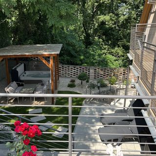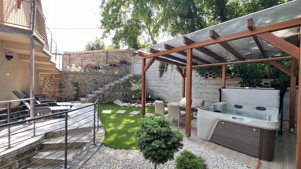 Magas belterű , világos ház, madárcsicsergős reggelek, nyugodt környezet, elhelyezkedése miatt belátni a várost felülről. Hiába voltak közel szomszédok nem volt nagy mozgolódás. - Számomra meglepő volt , hogy egy családi ház emeletén volt de szerencsére nem volt zavaró a külön udvar miatt. A jacuzzi elég messze van a bejárattól , nem volt beépítve, se másképp téliesítve így fázósakabbaknak télen a jelenlegi formában nem ajánlom napi használatra. Túl klóros volt a jacuzzi. Az első zuhanyzásnál majdnem sikerült leforrázni magunkat annyira forró volt a víz és csak nagyon nehézkesen tudtuk elviselhető hőmérsékletre beállítani , szorult a kar.