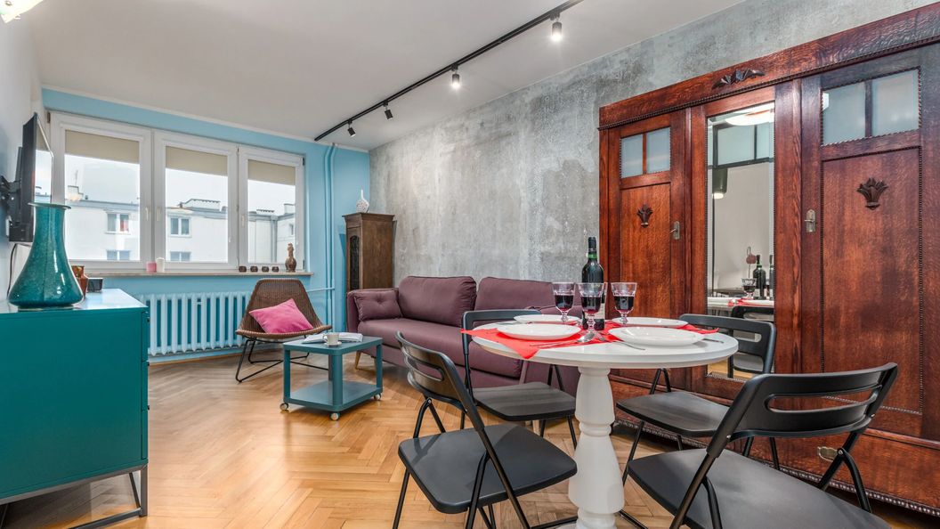 Stylowy apartament w atrakcyjnej lokalizacji przeznaczony dla 4 osób - idealnie sprawdzi się podczas podróży z rodziną lub przyjaciółmi. Powierzchnia mieszkania oferuje klimatyczny salon, niezależną kuchnię, sypialnię oraz łazienkę z wanną. Przestrzeń jest gustowna i funkcjonalna, w salonie znajduje się wygodna rozkładana sofa, tv z płaskim ekranem oraz wyjście na balkon z widokiem na okolicę. Apartament ze starannym wykończeniem wnętrza i wysublimowanym wystrojem wyróżnia się oryginalnością i dbałością o detale. Komfort pobytu gwarantują udogodnienia takie jak bezpłatne łącze Wifi, telewizor z płaskim ekranem oraz kompleksowe wyposażenie kuchenne (zmywarka, piekarnik) i łazienkowe. Atrakcyjny design mieszkania oraz kolorystyka wnętrza, przeplatana barwnymi elementami zapewnia mu nowoczesny i oryginalny klimat.