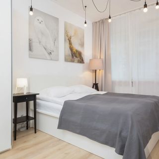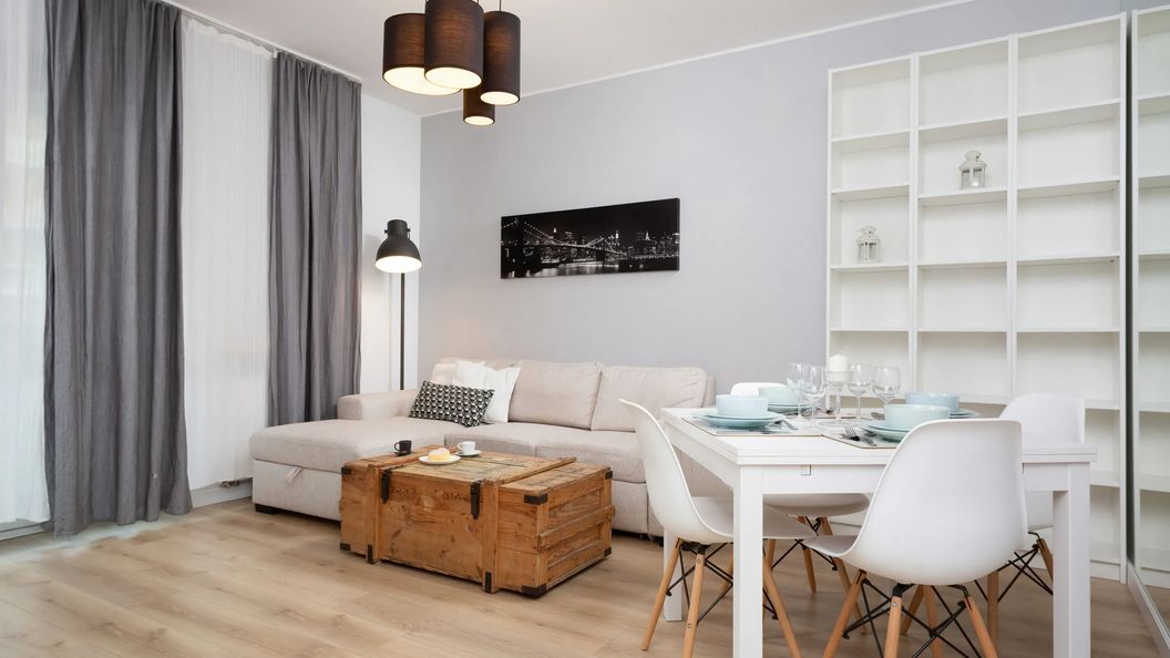 Apartament usytuowany na parterze budynku na Warszawskim Żoliborzu przeznaczony jest dla 4 osób. Przestrzeń apartamentu oferuje sypialnię, przestronny salon z aneksem kuchennym oraz łazienkę z prysznicem. Apartament wyróżnia się nowoczesnym wystrojem i starannym wykończeniem wnętrza, podkreślającym jego wysoki standard. Wyjątkowa aranżacja mieszkania i kompleksowe wyposażenie w niezbędne akcesoria kuchenne oraz łazienkowe gwarantują komfort pobytu. Nowoczesny design oraz jasna kolorystyka zapewniają mieszkaniu wyjątkowy i niepowtarzalny klimat. Mieszkanie posiada klimatyzacje, miejsce parkingowe w hali garażowej, a także taras z meblami ogrodowymi, gdzie można rozkoszować się poranną kawą.