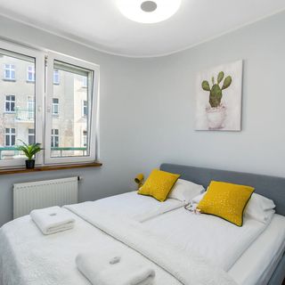Apartament usytuowany na 3 piętrze budynku ma możliwość zakwaterowania 3 osób! Przestrzeń apartamentu oferuje przestronny salon z kompleksowo wyposażonym aneksem kuchennym, sypialnie oraz łazienkę z wanną z funkcją prysznica. Apartament wyróżnia się estetycznym i jasnym wystrojem oraz starannym wykończeniem wnętrza. Część dzienna wyposażona w wygodną sofę oraz sypialnia, której przestrzeń wypełnia wygodne łóżko stanowią doskonałe miejsce wypoczynku i relaksu. Kameralny design połączony z nowoczesnością gwarantują wygodny i niezapomniany pobyt. Do dyspozycji gości jest także balkon z widokiem na klimatyczną ulicę.