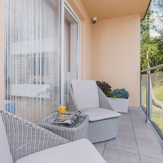 Ten w pełni wyposażony, luksusowy apartament jest odpowiedni dla 4 osób. Składa się z salonu z podwójną rozkładaną kanapą oraz sypialni z podwójnym łóżkiem małżeńskim. W każdym z pokoi znajdą Państwo telewizor z telewizją satelitarną. Do dyspozycji gości jest również aneks kuchenny wyposażony w najpotrzebniejsze sprzęty do przyrządzenia samodzielnie posiłku, takie jak piekarnik z funkcją mikrofali, zmywarka czy ekspres do kawy, a także łazienka z prysznicem, pralką oraz suszarką automatyczną. Mieszkania posiada alarm dlatego też można poczuć się w nim w pełni bezpiecznie. Apartament posiada również piękny, duży, zadaszony, przeszklony balkon z niesamowitym widokiem na Wisłę. Na balkonie znajdą państwo również kamerę pogodową. Dla gości zmotoryzowanych oraz uprawiających sporty do dyspozycji jest duży, przestronny, prywatny garaż wliczony w cenę. W garażu oprócz samochodu można pomieścić rowery czy narty (zamontowany jest uchwyt).