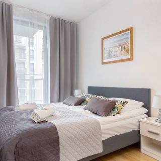 Obiekt oferuje zakwaterowanie dla maksymalnie 4 osób w komfortowo urządzonych wnętrzach. Przestrzeń mieszkalna składa się z salonu, w którym znajduje się rozkładana sofa i telewizor z płaskim ekranem, oraz oddzielnej sypialni wyposażonej w podwójne łóżko i pojemną szafę. Do apartamentu przynależy również umeblowany balkon, z którego roztacza się widok na wewnętrzne patio osiedla.