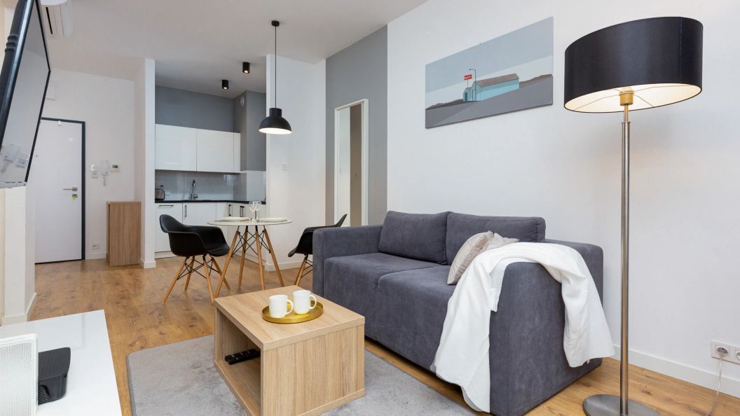 Apartament jest przeznaczony dla maksymalnie 4 osób. Jego przestrzeń została funkcjonalnie zaaranżowana, oferując salon z rozkładaną sofą oraz wydzieloną za pomocą ścianki strefę sypialną z podwójnym łóżkiem, co zapewnia poczucie prywatności.