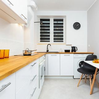 Płyta kuchenna elektryczna, czajnik elektryczny, lodówka z zamrażarką, zmywarka, piekarnik, naczynia kuchenne i zastawa stołowa, stół, 2 krzesła