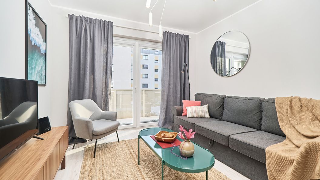 Apartament posiada wszystko co potrzebne do komfortowego wypoczynku - w pełni wyposażony aneks kuchenny, podwójne łóżko i dużą szafę w sypialni oraz telewizor z płaskim ekranem w salonie. Dostępne są również takie udogodnienia, jak SMART TV i szybki Internet Wifi. Apartament idealnie nadaje się zarówno do pobytu służbowego, jak i wypoczynku z rodziną lub przyjaciółmi.