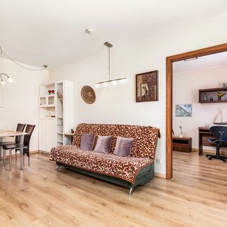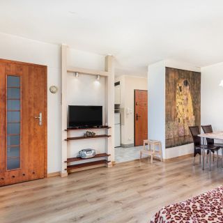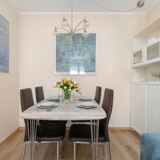 Do dyspozycji gości jest apartament przeznaczony dla 4 osób. Składa się on z salonu z rozkładaną sofą i telewizorem, sypialni z łóżkiem małżeńskim i biurkiem do pracy oraz łazienki z prysznicem. Integralną częścią mieszkania jest w pełni wyposażony aneks kuchenny ze stołem i krzesłami. Udogodnieniem jest także prywatny, umeblowany taras.