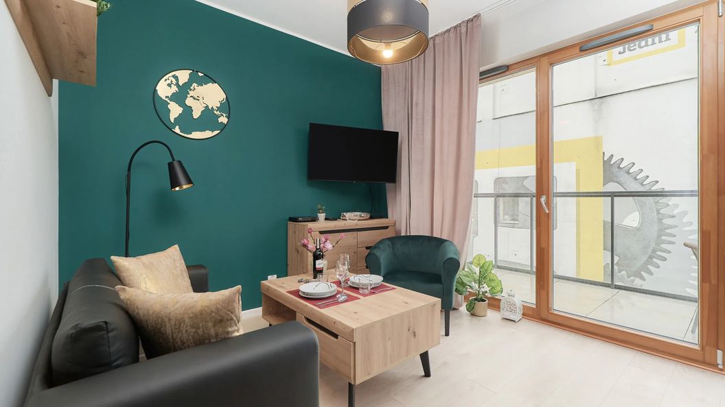 Apartament mieści się przy ulicy Księcia Witolda, w sąsiedztwie licznych restauracji, kawiarni i sklepów. Bliskość rzeki i Przystani Wrocławskiej zachęca do spacerów. W odległości 5 minut pieszo znajduje się przystanek tramwajowy, który ułatwia poruszanie się po mieście.