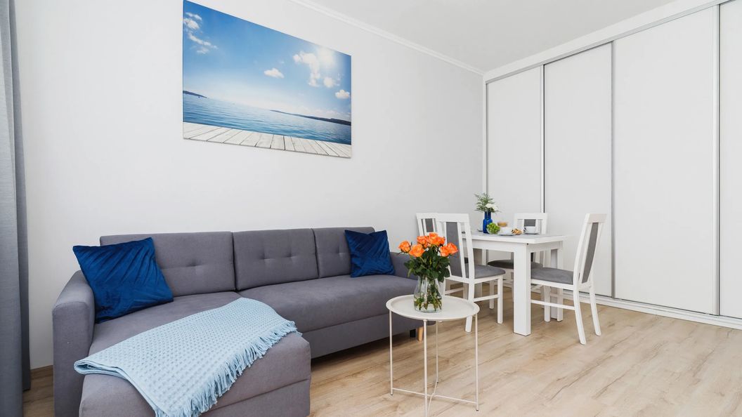 Przestrzeń przeznaczona jest dla maksymalnie 4 osób i składa się z dwóch oddzielnych pomieszczeń do spania. Do dyspozycji gości jest salon z rozkładaną sofą i telewizorem oraz sypialnia z podwójnym łóżkiem. Z części dziennej można wyjść na słoneczny balkon, stanowiący dodatkowe miejsce do odpoczynku.