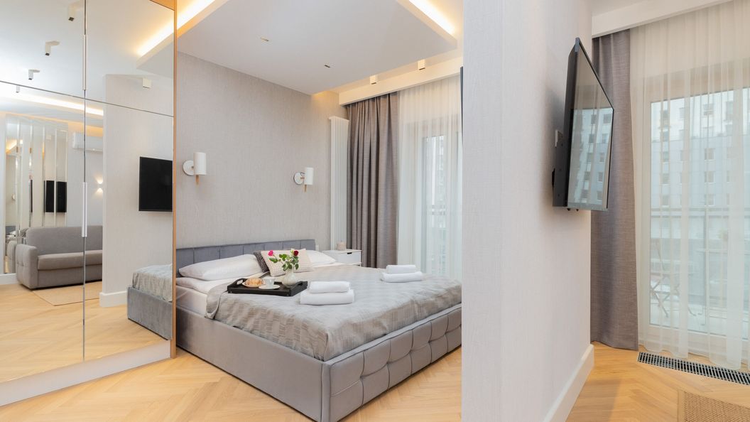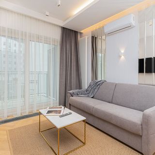 Klimatyzowany apartament typu studio znajdujący się w prestiżowym budynku Mennica Residence w Warszawie. Obiekt zlokalizowany jest w samym sercu Warszawy, zaledwie 1 km od Pałacu Kultury i Nauki!