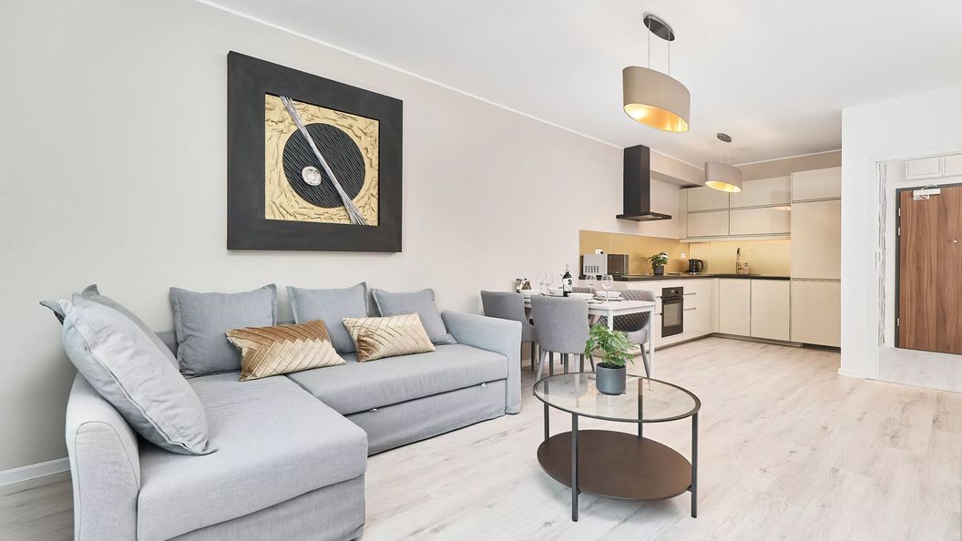 Mieszkanie znajduje się na pięknym osiedlu przy ulicy Gwiaździstej we Wrocławiu. W pobliżu znajdują się trzy duże centra handlowe – Arkady Wrocławskie (650 m), Sky Tower (400 m) i Wroclavia (1 km). Są również liczne sklepy spożywcze, piekarnia i kilka kwiaciarni. Okolica jest bogata w świetne restauracje oraz kawiarnie – Novo (280 m), Road American Sky Tower (500 m), PieRogi Vegan (350 m) i wiele innych! Dworzec kolejowy Wrocław Główny znajduje się w odległości 17 minut spacerem lub 5 minut jazdy samochodem.