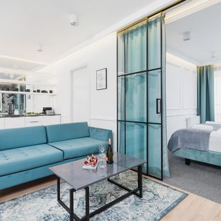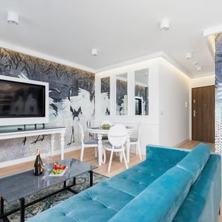 Sofa, TV, wyjście na balkon,