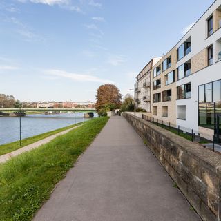 Piękny i nowoczesny apartament położony jest w cichej i zachwycająco malowniczej dzielnicy Krakowa przy Bulwarach Wiślanych, na nowo wybudowanym, strzeżonym osiedlu "Riva Verona". Osiedle jest idealnym wyborem dla osób pragnących odkrywać cuda Krakowa i zanurzyć się w naturze: przeszklony hol wejściowy prowadzi bezpośrednio do ścieżek spacerowych i rowerowych na bulwarach. Krótki spacer prowadzi na Wawel (15 minut pieszo), do Parku Dębnickiego (12 minut) i na Błonia (13 minut). Zaletą tak wyjątkowej lokalizacji jest możliwość zarówno biernego, jak i aktywnego wypoczynku nad wodą, w parku, czy w jednej z pobliskich kawiarni, w tym tych na wodzie. Miłośników historii ucieszy bliskość Rynku Głównego (1,3 km) oraz Plant (1,5 km). Infrastruktura miejska w okolicy zaspokaja wszystkie codzienne potrzeby, zapewniając wygodę bliskości sklepu spożywczego (120 m), kawiarni (200 m) i restauracji (60 m). Lokalizacja mieszkania zapewnia bezpośredni dostęp do komunikacji miejskiej, jak również łatwy dojazd do głównych arterii komunikacyjnych. W odległości 100 metrów od apartamentu znajduje się przystanek autobusowy, a dojazd samochodem na lotnisko zajmuje niespełna pół godziny.