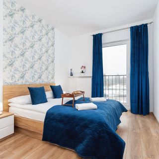 W pełni wyposażony apartament może gościć do 4 osób. Składa się z salonu z aneksem kuchennym, oddzielnej sypialni i łazienki z wanną. Wystrój wnętrza z sukcesem łączy w sobie ciepłe elementy z minimalistycznymi nowoczesnymi meblami, tworząc przestrzeń, która jest jednocześnie przytulna i stylowa. Wszystkie elementy mieszkania współgrają ze sobą, gwarantując maksimum komfortu. Na wyposażonym w meble balkonie goście mogą się zrelaksować przy widoku na pobliską zieleń. Odpoczynek możliwy jest również dzięki bardziej nowoczesnej rozrywce: multimedia w apartamencie obejmują telewizor z płaskim ekranem oraz bezpłatne łącze WiFi. Inne udogodnienia to kompleksowy zestaw urządzeń kuchennych i łazienkowych (zmywarka, piekarnik, suszarka do włosów) oraz powitalny pakiet kosmetyków, ręczników i pościeli.