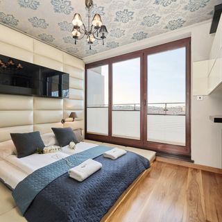 Ekskluzywny apartament z widokiem na wrocławski Stary Rynek będzie idealny dla pary. Oferuje on przestronny salon z aneksem kuchennym, sypialnię oraz łazienkę z prysznicem i wanną. Mieszkanie wyróżnia estetyczny i nowoczesny design oraz powierzchnia ponad 55 m2. Część dzienna wyposażona jest w wygodną sofę, 2 fotele oraz stół z 3 krzesłami, w przepięknej sypialni znajdziesz ogromne łoże małżeńskie, które będzie idealnym miejscem na odpoczynek i relaks. Elegancki wystrój i wysokiej jakości wyposażenie apartamentu, w skład którego wchodzi klimatyzacja, internet Wi-fi oraz bogaty sprzęt AGD, gwarantują komfortowy i niezapomniany pobyt. Do Państwa dyspozycji jest również słoneczny balkon z meblami ogrodowymi - idealne miejsce na relaks po całym dniu zwiedzania Wrocławia lub delektowanie się poranną kawą. Goście podróżujący samochodem mogą skorzystać z prywatnego miejsca parkingowego w garażu podziemnym.