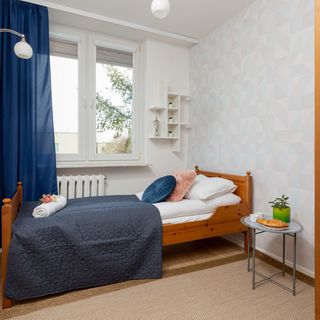 Łóżko pojedyncze, szafa, stolik nocny