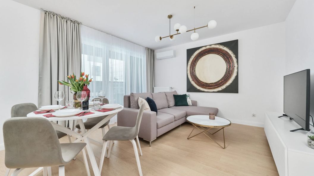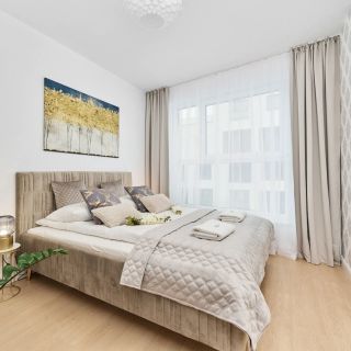 Mieszkanie znajduje się na pięknym osiedlu przy ulicy Gwiaździstej we Wrocławiu. W okolicy znajdują się trzy duże centra handlowe - Arkady Wrocławskie (650 m), Sky Tower (400 m) i Wroclavia (1 km). W pobliżu znajdują się również liczne sklepy spożywcze, piekarnia i kilka kwiaciarni. Dworzec kolejowy Wrocław Główny oddalony jest o 17 minut spacerem lub 5 minut jazdy samochodem. W zaledwie 4 minuty znajduje się przystanek tramwajowy - Zaolziańska. Dojazd tramwajem do centrum miasta zajmuje około 13 minut. Goście podróżujący samochodem mogą skorzystać z prywatnego miejsca parkingowego w garażu podziemnym.