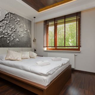 Elegancki, w pełni wyposażony apartament znajduje się na zamkniętym osiedlu "Sakura" przy ulicy Kłobuckiej w dzielnicy Ursynów w Warszawie. To doskonały wybór dla międzynarodowych gości ze względu na bliskość Lotniska Chopina, do którego można dotrzeć samochodem w mniej niż 10 minut. Osiedle znajduje się również w bliskim sąsiedztwie biznesowego centrum Warszawy - nowej części Mokotowa - oraz znajdującego się tam centrum handlowego Galeria Mokotów z 210 sklepami i kompleksem kinowym. Doskonała lokalizacja zapewnia również bogate zaplecze handlowo-usługowe, takie jak sklepy, restauracje i banki, które zaspokoją wszystkie codzienne potrzeby. Lokalizacja zapewnia łatwy dojazd do innych dzielnic, zarówno środkami transportu publicznego, jak i prywatnego. Przystanek autobusowy "Bokserska" oferujący bezpośrednie połączenie ze stacją metra Służew znajduje się zaledwie 500 m od budynku. Ponadto, do najbliższej stacji kolejowej (Warszawa Okęcie) można dotrzeć w mniej niż 15 minut pieszo. Dojazd samochodem do centrum miasta zajmuje około pół godziny.