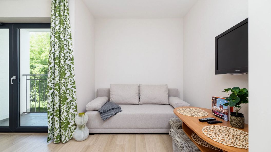 Apartament z możliwością zakwaterowania 2 osób składa się z części wypoczynkowej z rozkładaną sofą, w pełni wyposażonego aneksu kuchennego i łazienki z prysznicem. Jest to świetne rozwiązanie dla pary lub na wyjazd biznesowy! Goście mogą skorzystać z powitalnego zestawu kosmetyków (mydło, szampon i żel pod prysznic), ręczników oraz artykułów gospodarstwa domowego, takich jak żelazko czy odkurzacz. Urządzenia dobrej jakości zapewniają komfort pobytu. Goście mogą również skorzystać z szybkiego Wi-Fi i telewizora z płaskim ekranem. Obiekt nie zapewnia miejsca parkingowego, ale obok budynku jest płatny parking, gdzie można zostawić samochód.