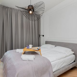 Przestrzeń apartamentu jest przystosowana do pobytu maksymalnie 4 osób. Składa się z oddzielnej sypialni oraz salonu z rozkładaną sofą, co zapewnia komfortowy podział strefy dziennej i nocnej.