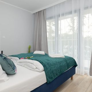 Powierzchnia apartamentu pozwala na zakwaterowanie 4 osób, co czyni go idealnym miejscem na wyjazd rodzinny lub spotkanie z przyjaciółmi! Układ pomieszczeń obejmuje sypialnię z podwójnym łóżkiem, salon z wygodną podwójną sofą i aneksem kuchennym oraz łazienkę z prysznicem. Apartament posiada również dwa prywatne balkony, gdzie goście mogą rozkoszować się poranną filiżanką kawy z widokiem na okolicę. Połączenie salonu z kompleksowo wyposażoną kuchnią i jadalnią sprawia, że towarzysze podróży będą mogli wspólnie spędzać czas przy posiłkach. Komfortowy pobyt zapewnią także akcesoria łazienkowe i inne udogodnienia. Goście mogą skorzystać z powitalnego zestawu kosmetyków (mydło, szampon i żel pod prysznic), ręczników i szerokiej gamy artykułów gospodarstwa domowego, takich jak żelazko, odkurzacz czy pralka. Wnętrze apartamentu zachwyca jasnym, nowoczesnym charakterem i funkcjonalnością. Mieszkanie jest gustownie urządzone i panuje w nim spokojny, przytulny klimat. Apartament posiada prywatne miejsce postojowe na parkingu zewnętrznym, przy budynku.