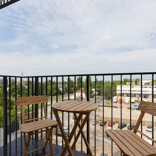 Piękny apartament z jedną sypialnią położony jest w doskonałej lokalizacji przy ulicy Kotsisa, w dzielnicy Praga-Północ. Mieszkanie jest częścią nowego osiedla mieszkaniowego "Home Factory". Lokalizacja w bezpośrednim sąsiedztwie ulicy Jagiellońskiej, pomiędzy dwiema przeprawami - Mostem Gdańskim i Mostem Grota-Roweckiego, zapewnia doskonałą mobilność. Dużym atutem osiedla jest szybkie połączenie z centrum miasta, dzięki linii tramwajowej, której przystanek oddalony jest 5 minut piechotą. Do najbliższej stacji metra można dojechać tramwajem w zaledwie 12 minut. Osiedle jest nie tylko doskonale skomunikowane z centrum miasta, ale także zapewnia maksymalny poziom komfortu w najbliższej okolicy. Sklep spożywczy znajduje się na parterze budynku. Okoliczne tereny rekreacyjne są idealne na jogging - zielone przestrzenie wzdłuż Wisły objęte programem "Natura 2000" - dają wytchnienie od miejskiej atmosfery. Apartament znajduje się również tuż obok dworca kolejowego Warszawa Praga, a dojazd samochodem na lotnisko zajmuje około pół godziny.