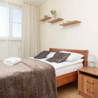 Ten w pełni wyposażony apartament o powierzchni 51 m² może pomieścić 4 osoby. Składa się z przedpokoju, salonu z aneksem kuchennym i balkonem, sypialni z łóżkiem małżeńskim oraz łazienki z wanną. Panuje tu przytulny klimat, dzięki przestrzeni urządzonej w minimalistycznej, ciepłej palecie kolorów. Wnętrze apartamentu jest jasne, przestronne i funkcjonalne. Szeroki wachlarz udogodnień, w tym multimedialnych (telewizor z płaskim ekranem, bezpłatny dostęp do Wi-Fi), a także wyposażenie łazienki i kuchni, gwarantuje najwyższy komfort naszych gości. Dla ułatwienia rozpoczęcia każdego pobytu zapewniony jest bezpłatny zestaw kosmetyków, ręczniki oraz pościel. Obiekt posiada przypisane miejsce parkingowe w garażu w budynku Belgradzka 10.