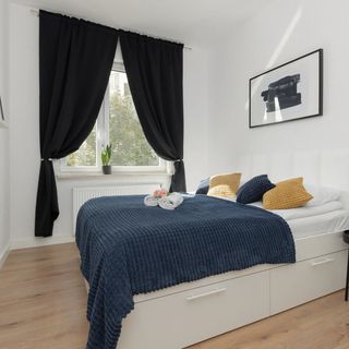 Podwójne łóżko, komplet pościeli, biurko, szafa