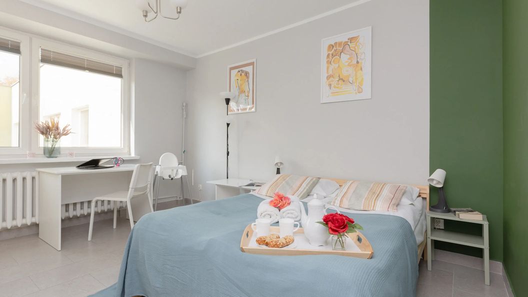 Ten przestronny apartament znajduje się na warszawskim Mokotowie, przy ulicy Batuty, z dala od zgiełku miasta, co gwarantuje spokojny pobyt. Jednocześnie bardzo łatwo dostać się do centrum, aby zwiedzić najbardziej znane miejsca, czy skorzystać z nocnego życia stolicy. Wszystko dzięki bardzo dobrze rozwiniętej sieci komunikacji miejskiej. Najbliższy przystanek autobusowy (Bacha) znajduje się w odległości 300 m, a stacja metra (Służew) - 750 m. Dojazd do centrum miasta metrem zajmuje zaledwie 15 minut, a samochodem 25. Dużym atutem lokalizacji jest bliskość lotniska - dojazd tam zajmuje około 10 minut. W najbliższej okolicy można znaleźć także mnóstwo sklepów spożywczych i restauracji, więc nigdy Ci niczego nie zabraknie! Dodatkowo budynek otoczony jest licznymi terenami zielonymi - Park Dolinka Służewska znajduje się tuż obok! Oferuje on wiele atrakcji i jest doskonałym miejscem na poranny jogging lub wieczorny spacer na łonie natury. Niezależnie od tego, czego potrzebujesz - komunikacji miejskiej, rozrywki, turystycznego odkrywania cudów Warszawy, czy po prostu relaksu w spokojnej okolicy - ta lokalizacja jest idealnym rozwiązaniem!