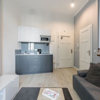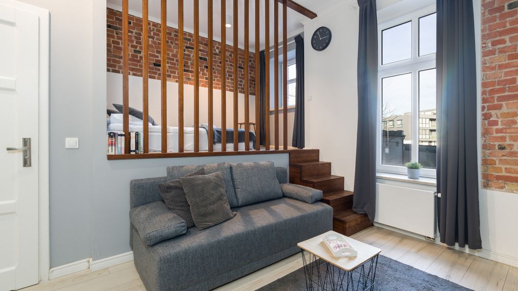 Ten piękny apartament typu studio może pomieścić do 4 osób. Idealny na rodzinne wakacje lub wypad z przyjaciółmi. Składa się z salonu z aneksem kuchennym, części sypialnej na antresoli oraz łazienki z prysznicem. Wnętrze urządzone jest w bardzo nowoczesnym duchu - piękna paleta kolorów i ceglane ściany tworzą niezwykle przytulny i stylowy klimat. W aneksie kuchennym znajduje się płyta indukcyjna, mikrofalówka oraz czajnik elektryczny, dzięki czemu możesz z łatwością przygotować swoje ulubione posiłki. Goście mają również dostęp do telewizora i bezpłatnej sieci Wi-Fi, a także do wszystkich niezbędnych urządzeń łazienkowych (suszarka do włosów, sprzęt do prasowania). Kwatera jest doskonałym wyborem dla każdego, kto ceni sobie komfort i funkcjonalność, ale także estetykę. Dla ułatwienia rozpoczęcia każdego pobytu zapewniony jest bezpłatny zestaw kosmetyków, ręczniki oraz pościel.