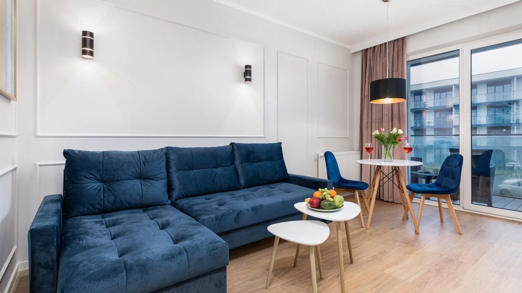 Przestrzeń mieszkalna została przygotowana z myślą o pobycie 2 osób. Składa się z pokoju dziennego z rozkładaną kanapą, w pełni wyposażonego aneksu kuchennego oraz łazienki z wanną. Do apartamentu przynależy umeblowany balkon, stanowiący dodatkowe miejsce do odpoczynku.
