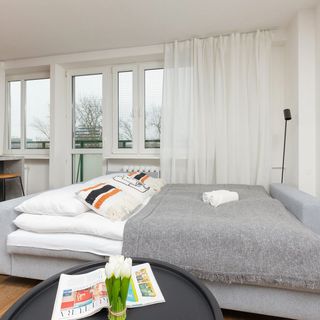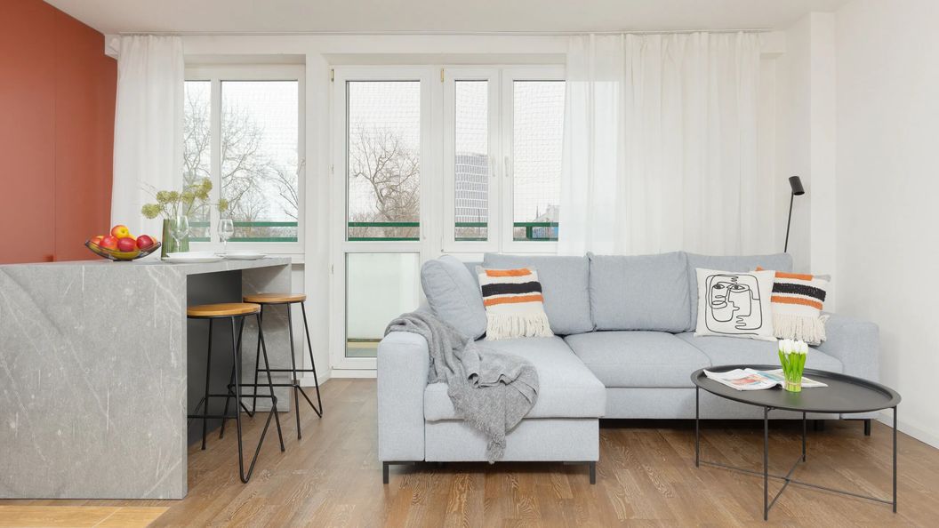 Ten stylowo urządzony, przytulny apartament typu Studio może ugościć 2 osoby. Jest to zatem świetne rozwiązanie na wyjazd dla pary lub w celach biznesowych! Na przestrzeń mieszkalną składa się z przestronny salon z aneksem kuchennym oraz łazienka z prysznicem i toaletą. W salonie znajduje się stylowa i wygodna rozkładana sofa narożnikowa i wyjście na prywatny balkon. Goście znajdą tu również biurko z krzesłem, co zapewnia możliwość pracy zdalnej lub nauki. Apartament posiada również bezpłatne łącze Wi-Fi oraz telewizor z płaskim ekranem i Smart TV. Szeroki wachlarz udogodnień oraz kompleksowe wyposażenie apartamentu w niezbędne akcesoria i sprzęty kuchenne, jak i łazienkowe gwarantuje komfort pobytu. Na dobry początek przyjemnego wypoczynku zapewniamy gościom bezpłatne kosmetyki (mydło, szampon i żel pod prysznic), ręczniki oraz pościel. Wnętrze studia jest nowoczesne i minimalistycznie urządzone, z dbałością o każdy szczegół. Dobór kolorów podkreśla wysoki standard apartamentu i zapewnia mu niepowtarzalny klimat.
