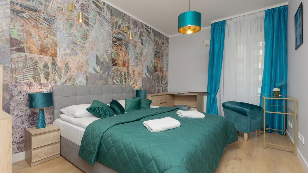 Do dyspozycji gości oddano przestronny apartament, który może pomieścić do 6 osób. Składa się on z salonu, oddzielnej sypialni, aneksu kuchennego oraz łazienki wyposażonej w prysznic. Integralną częścią mieszkania jest balkon z meblami ogrodowymi, stanowiący dodatkową przestrzeń do wypoczynku.