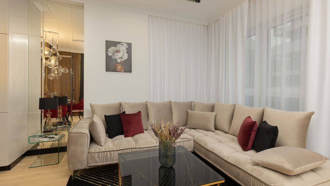 Doskonale zlokalizowany, luksusowy i komfortowy apartament, przeznaczony dla najbardziej wymagających gości. Apartament może pomieścić 2 osoby, składa się z salonu, sypialni, aneksu kuchennego oraz łazienki z wanną. Do apartamentu przynależy również balkon z widokiem na osiedle oraz miejsce postojowe w garażu podziemnym. Elegancka i nowoczesna aranżacja apartamentu oraz kompleksowe wyposażenie w niezbędne sprzęty kuchenne i łazienkowe, a także bezpłatne łącze Wi-Fi i telewizor z płaskim ekranem gwarantują komfortowy pobyt. Goście mają również dostęp do konta Disney+. Dodatkowo apartament wyposażony jest w klimatyzację, co jest szczególnie przydatne w upalne letnie dni. Wnętrze jest gustownie wykończone i urządzone, nowoczesny styl i jego przyjemna kolorystyka zapewniają niepowtarzalną atmosferę i podkreślają jego wysoki standard. Dla ułatwienia rozpoczęcia każdego pobytu zapewniony jest bezpłatny zestaw kosmetyków, ręczniki oraz pościel.