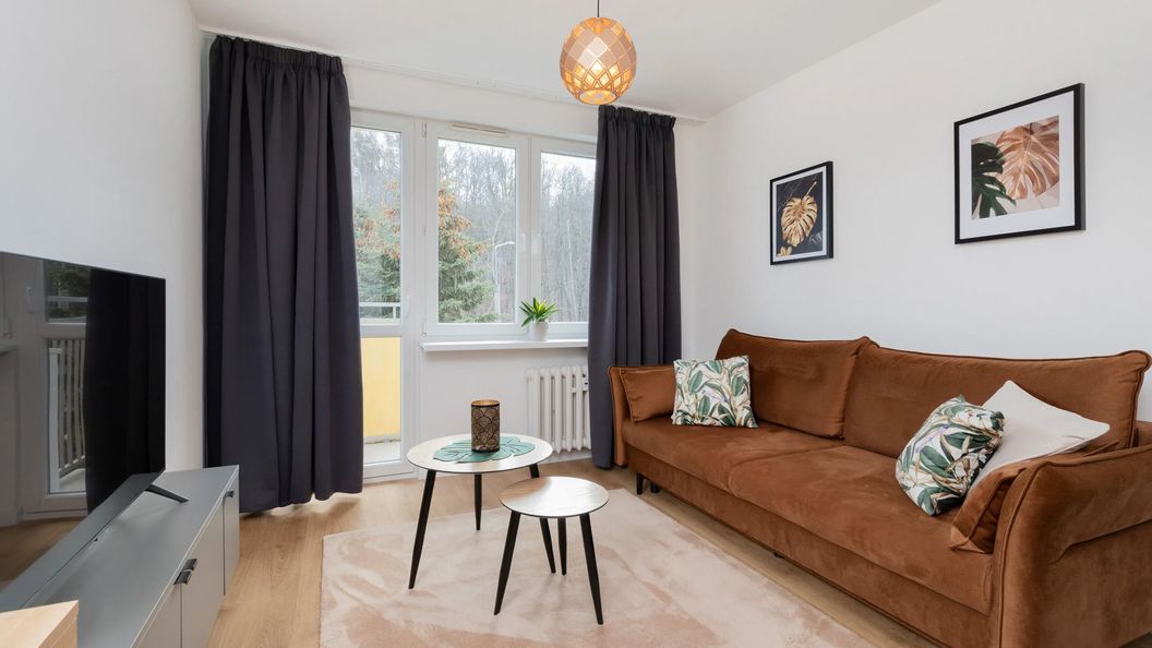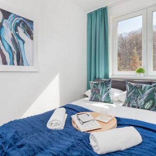 W pełni wyposażony apartament o powierzchni 37 m² może komfortowo ugościć do 4 osób. Jest to zarówno idealne rozwiązanie na rodzinny wyjazd, jak i dla grupy przyjaciół! Rozkład pomieszczeń obejmuje salon z aneksem kuchennym, sypialnię oraz łazienkę z prysznicem i toaletą. Przestronna część dzienna posiada do spania wygodną, podwójną sofę, a sypialnia - łóżko małżeńskie. Dodatkowo, do apartamentu przynależy niewielki balkon z widokiem na zieleń ogródka i osiedle. Nowoczesność wykończenia uzupełniają przydatne udogodnienia, takie jak piekarnik czy zmywarka. Multimedia obejmują telewizor z płaskim ekranem oraz bezpłatny dostęp do sieci Wi-Fi. Mieszkanie wyposażone jest także w podstawowe udogodnienia, takie jak żelazko, deska do prasowania, odkurzacz i suszarka do włosów. Na dobry początek każdego pobytu zapewniono bezpłatny zestaw kosmetyków, ręczniki i pościel. Wnętrze wykończone jest stylowo, z ciepłym drewnianym parkietem i unikatowymi dodatkami, które nadają mu indywidualny charakter. Apartament jest przyjazny pupilom, więc zapraszamy również gości podróżującymi ze zwierzętami.