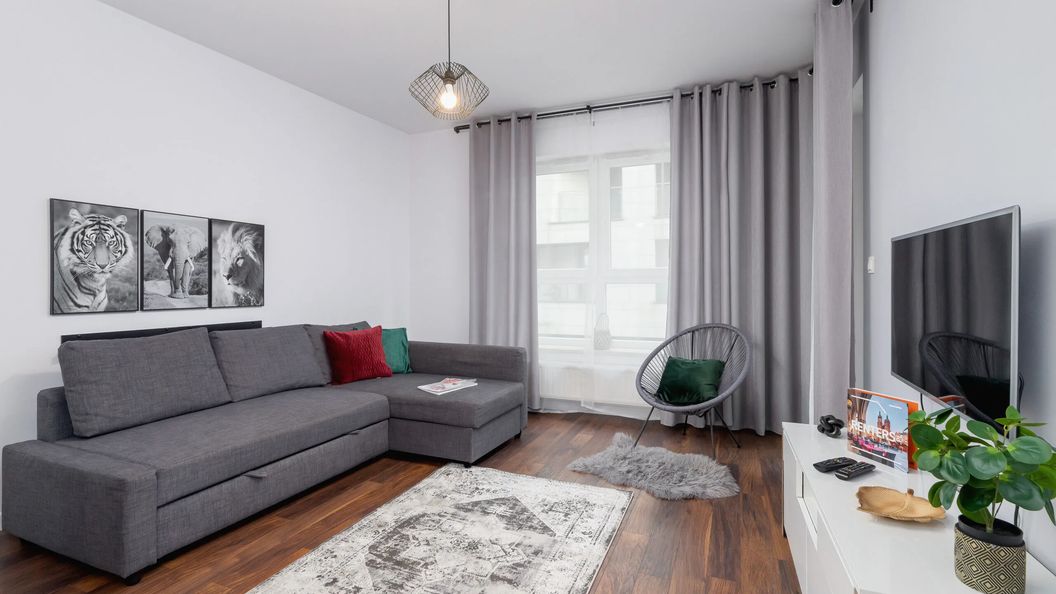 Komfortowy apartament usytuowany na 1. piętrze budynku może zakwaterować 4 osoby. Przestrzeń mieszkalna oferuje przestronny salon, aneks kuchenny, sypialnię oraz łazienkę z prysznicem i toaletą. Część dzienna wyposażona w sofę, TV i wyjście na balkon stanowi doskonałe miejsce relaksu. Sypialnia oferuje wygodne łóżko małżeńskie i miejsce do pracy zdalnej lub nauki. Szeroki wachlarz udogodnień oraz kompleksowe wyposażenie apartamentu w niezbędne akcesoria i sprzęty kuchenne, jak i łazienkowe gwarantuje komfort pobytu. Apartament posiada dostęp do szybkiego bezpłatnego Internetu Wifi. Dla ułatwienia rozpoczęcia każdego pobytu zapewniono bezpłatny zestaw kosmetyków (mydło, szampon i żel pod prysznic), ręczniki oraz pościel. Wysublimowana aranżacja przestrzeni oraz stylowo dobrana kolorystyka wnętrza podkreślają wysoki standard mieszkania. Zapraszamy również gości podróżujących ze zwierzętami, ponieważ jest to apartament przyjazny pupilom (100 PLN/pobyt).