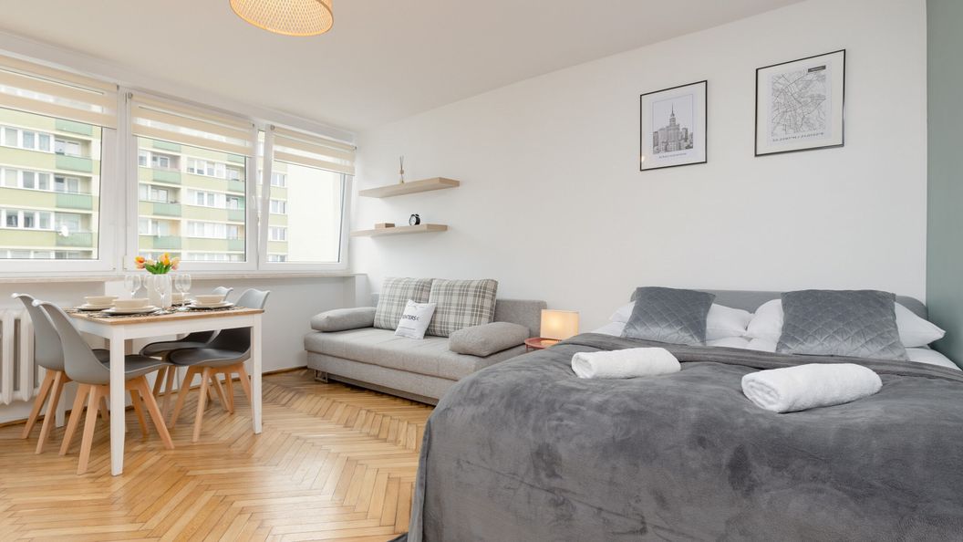 W pełni wyposażone, funkcjonalne studio w Śródmieściu gwarantuje możliwość zakwaterowania 4 osób. W skład powierzchni mieszkalnej wchodzi przestronny, wielofunkcyjny salon z wygodną sofą oraz łóżkiem małżeńskim, aneks kuchenny oraz łazienka z prysznicem. Dodatkowo, w części dziennej znajduje się stół z czterema krzesłami przy którym można komfortowo zjeść posiłki przygotowane w pełni wyposażonym kąciku kuchennym. Wychodząc naprzeciw wszelkim potrzebom gości, przestrzeń została zaprojektowana w sposób niezwykle praktyczny i funkcjonalny. Nowoczesny wystrój wnętrza w jasnych barwach sprawia, że studio stanowi przyjemne miejsce do wypoczynku o wysokich walorach estetycznych. W dodatku, całe pomieszczenie wypełnione jest naturalnym światłem dziennym dzięki czterem dużym oknom. Udogodnienia multimedialne w tym obiekcie obejmują bezpłatne łącze Wi-Fi oraz telewizor z dostępem do kanałów kablowych i SmartTV. Mile widziani są również goście z pupilami - apartament jest przyjazny zwierzętom!