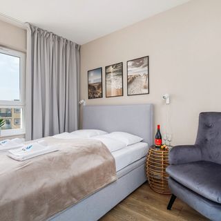 Budynek Sun Towers znajduje się na pięknym nowoczesnym osiedlu. Wielkim atutem jest lokalizacja: w sąsiedztwie Parku Chopina, a jednocześnie w pobliżu centrum Świnoujścia i tylko 1.4 km od pięknej piaszczystej plaży. Okolica jest dobrze rozwinięta, więc w pobliżu apartamentu znajdziesz wszystko, czego potrzebujesz. W sąsiedztwie odwiedzić można liczne punkty handlowo-usługowe oraz restauracje. Na terenie inwestycji znajduje się także parking, na którym można pozostawić swoje auto. Goście mogą skorzystać ze znajdującego się w obiekcie tarasu rekreacyjnego z placem zabaw dla dzieci. To doskonałe miejsce do rodzinnego relaksu wśród zieleni bez konieczności opuszczania budynku.