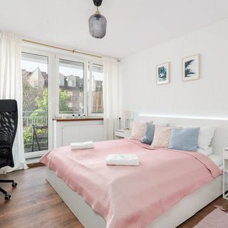 Ten gustownie urządzony apartament może gościć do 4 osób. Składa się z salonu z aneksem kuchennym, balkonu, sypialni oraz łazienki z prysznicem. Wszystkie elementy mieszkania współgrają ze sobą, tworząc estetyczną dla oka całość. W apartamencie dostępny jest telewizor oraz bezpłatne łącze WiFi. Inne udogodnienia to m.in.: zmywarka, piekarnik czy też pralka, które pozwalają na komfortowy wypoczynek i poczucie się jak w domu. Goście mogą rozpoczynać dzień filiżanką kawy bądź też herbaty na balkonie z meblami ogrodowymi do odpoczynku. W sypialni znajduje się biurko z ergonomicznym krzesłem, co sprawia, że apartament będzie również bardzo dobrą opcją dla osób szukających miejsca do pracy zdalnej. Na dobry początek pobytu zapewniamy gościom bezpłatny zestaw kosmetyków, ręczniki oraz pościel.