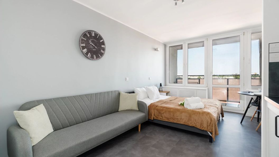 To w pełni wyposażone studio dla 3 osób, zostało zaprojektowane z myślą o stworzeniu domowej i gościnnej atmosfery w świetnej poznańskiej lokalizacji. Estetyczna aranżacja apartamentu oraz wysokiej jakości wyposażenie gwarantują pobyt na najwyższym poziomie. Dopełnieniem wyjątkowej aury mieszkania jest atrakcyjna, jasna kolorystyka wnętrza z zastosowaniem stylowych elementów dekoracyjnych. Przestrzeń podzielona jest na salon z aneksem kuchennym oraz łazienkę z prysznicem. Do dyspozycji gości znajduje się wygodne podwójne łóżko oraz jednoosobowa nierozkładana sofa. Studio jest jasne i funkcjonalnie urządzone, aby zapewnić maksymalny komfort pobytu. Największym atutem studia jest prywatny balkon z widokiem na miasto – idealny na łyk porannej aromatycznej kawy. Przyjemny pobyt gwarantują ponadto nowoczesne udogodnienia, takie jak bezpłatne łącze WiFi czy telewizor z płaskim ekranem oraz niezbędne wyposażenie łazienkowe i kuchenne. Na dobry początek każdego przyjemnego pobytu zapewniony jest bezpłatny kosmetyki (mydło, szampon i żel pod prysznic), ręczniki oraz pościel.
