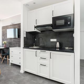 Mikrofalówka, płyta indukcyjna, zestaw sztućców i naczyń, lodówka i zamrażalka, przybory kuchenne, czajnik elektryczny, szklanki, kubki, garnki, patelnia, kieliszki do wina