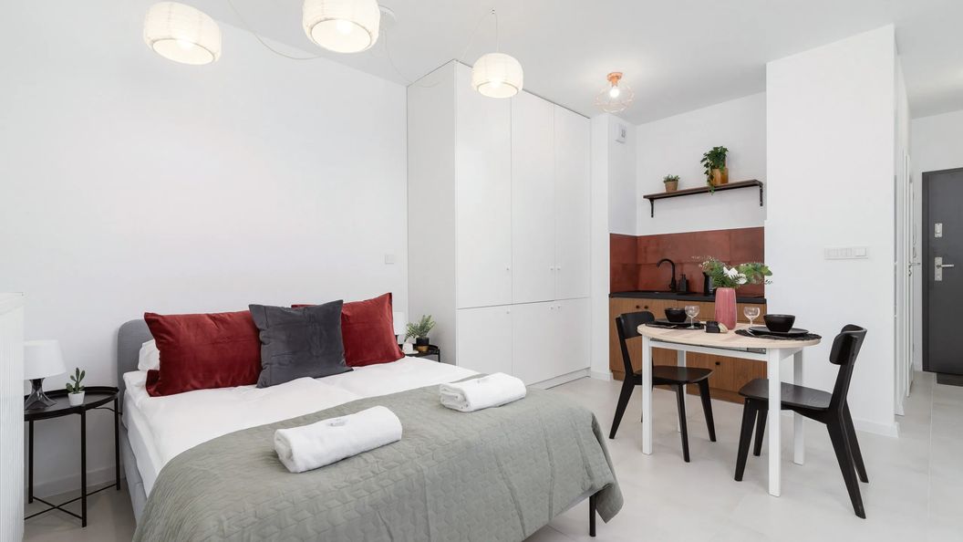 Nowoczesny apartament typu studio, zlokalizowany w nowej inwestycji mieszkaniowej przy ulicy Kiełkowskiego w Krakowie, w niedalekiej odległości od historycznej dzielnicy Kazimierz.