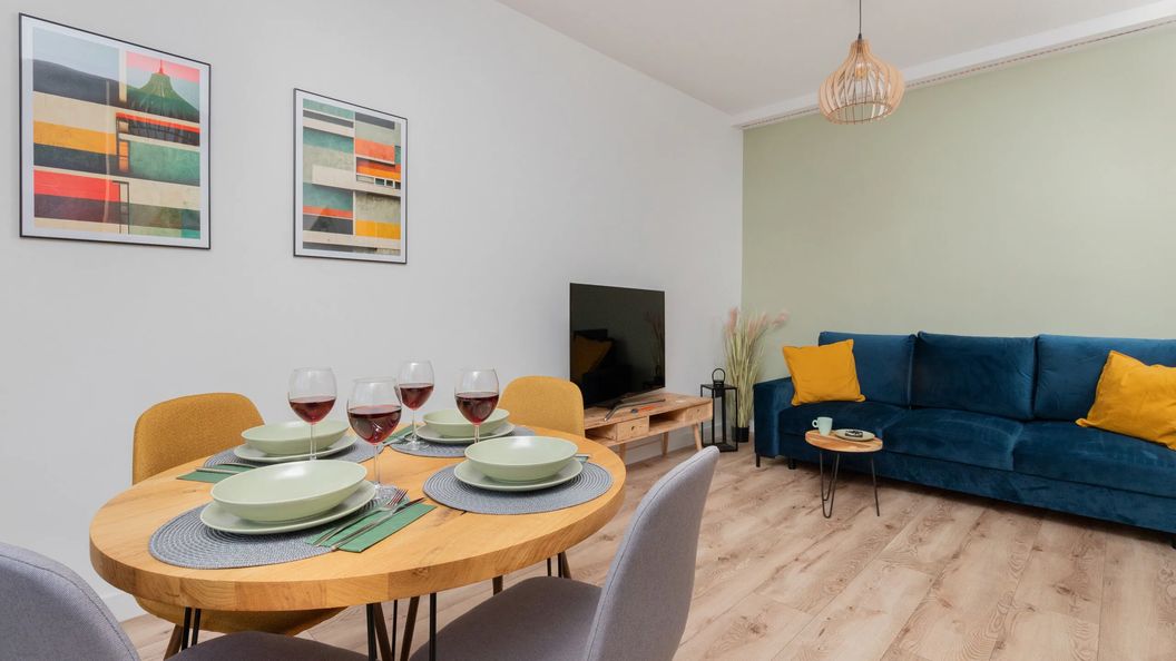 W najbliższym otoczeniu apartamentu tętni życie miejskie. Wzdłuż sąsiedniej ulicy Świętojańskiej zlokalizowane są liczne restauracje, kawiarnie i punkty handlowo-usługowe. W pobliżu znajduje się również Hala Targowa, gdzie można zaopatrzyć się w lokalne produkty.