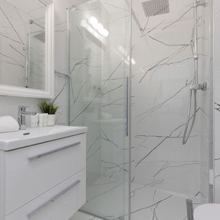 Prysznic, umywalka, lustro, toaleta