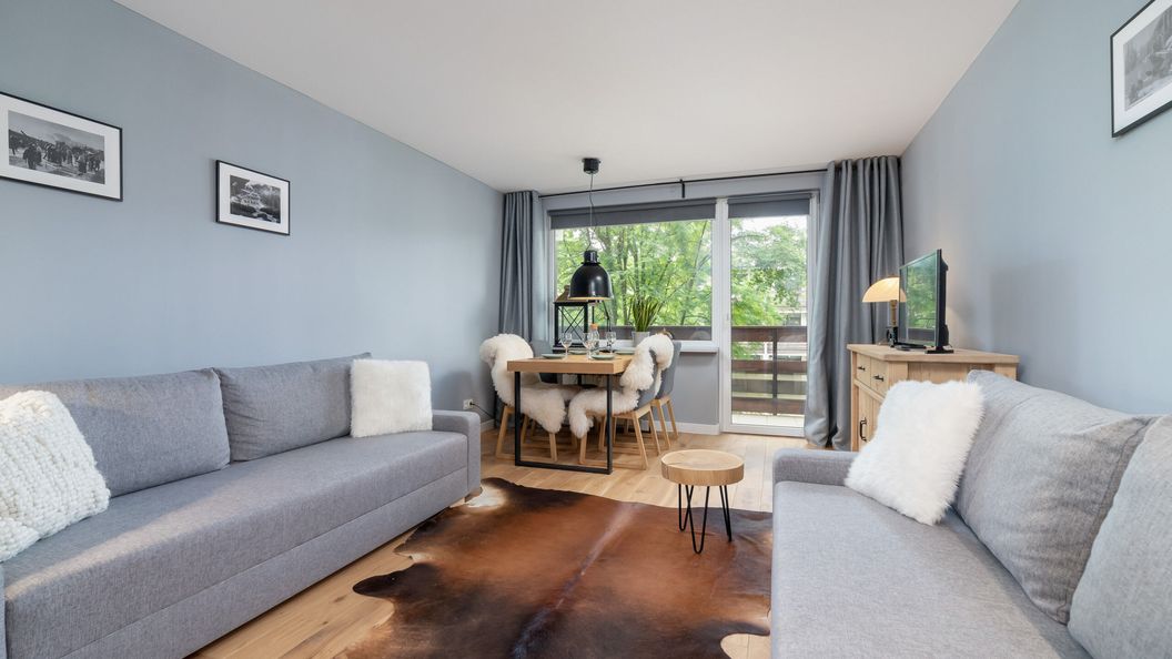 Piękne studio mieszczące się na 2.5 piętrze gwarantuje możliwość noclegu dla 4 osób. Apartament to idealna propozycja dla gości, którzy pragną zasmakować niepowtarzalnej atmosfery Zakopanego w gronie rodziny, czy przyjaciół. W skład powierzchni mieszkalnej wchodzi przestronny salon z dwiema rozkładanymi sofami i stołem jadalnianym, oddzielna kuchnia oraz łazienka z prysznicem. Dodatkowo, do mieszkania przynależy balkon, z którego roztacza się widok na góry - perfekcyjne miejsce na poranek z kubkiem kawy w ręku! Studio zachwyci każdego, kto ceni sobie wygodę, funkcjonalność, jak i wysoką estetykę wykonania. Dodatki w góralskim stylu dodatkowo podkreślają niezwykły charakter tego miejsca. Komfort pobytu zapewnia wiele udogodnień, takich jak bezpłatne łącze WiFi, telewizor z płaskim ekranem oraz niezbędne wyposażenie kuchenne i łazienkowe. Na dobry początek zakwaterowania zapewniono gościom bezpłatny zestaw kosmetyków, ręczniki oraz pościel.