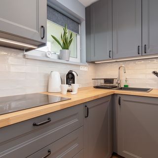 Lodówka, czajnik, ekspres na kapsułki, płyta indukcyjna, zestaw naczyń kuchennych i stołowych