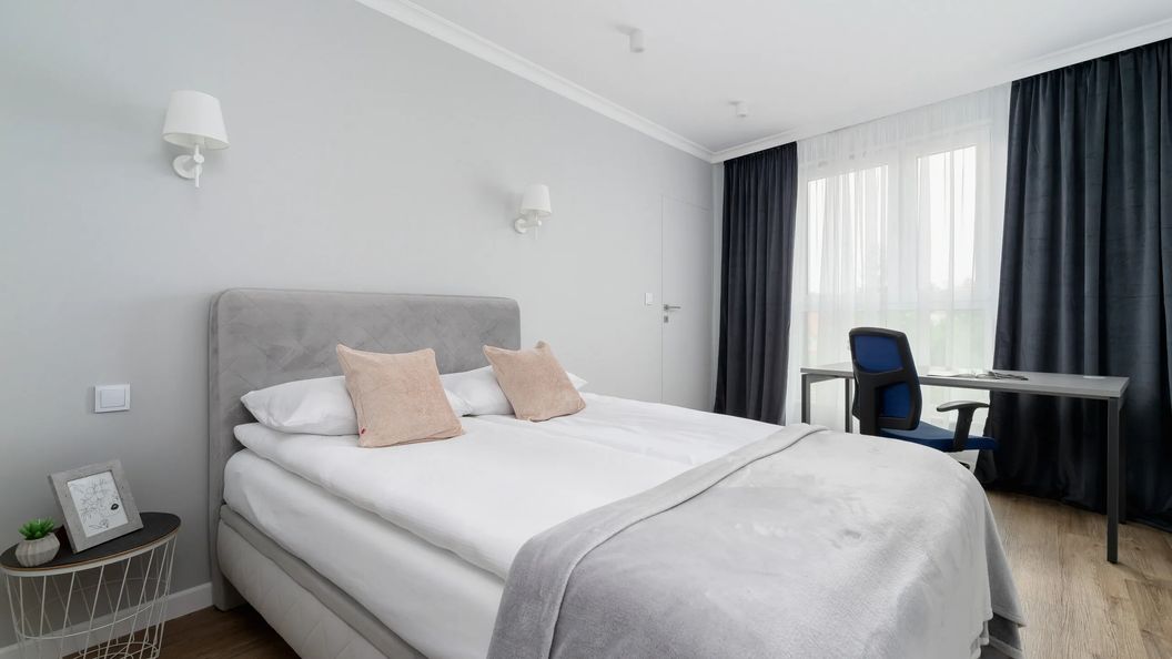 To jasne mieszkanie oferuje zakwaterowanie dla 6 osób na powierzchni 66 m². Mieszkanie składa się z salonu z podwójną rozkładaną sofą i aneksem kuchennym, dwóch sypialni, oddzielnej garderoby i łazienki z prysznicem oraz toalety. Jest to idealny wybór na nocleg w Krakowie dla rodziny z dziećmi lub grupy przyjaciół. Mieszkanie posiada balkon z meblami ogrodowymi, gdzie można cieszyć się poranną kawą na świeżym powietrzu. Do mieszkania wpada naturalne światło dzienne, co dodatkowo wpływa na jego pozytywną atmosferę. Goście pracujący zdalnie mogą korzystać z biurek w sypialniach, aby wygodnie dokończyć swoje zadania biznesowe. W mieszkaniu znajduje się również bezpłatny, szybki internet Wi-Fi oraz telewizor z technologią SmartTV. Szeroki wachlarz udogodnień oraz kompleksowe wyposażenie mieszkania w niezbędne akcesoria i sprzęty kuchenne (zmywarka, czajnik), a także łazienkowe (pralka) gwarantuje komfortowy pobyt. Aby ułatwić rozpoczęcie każdego pobytu, kosmetyki (mydło, szampon i żel pod prysznic), ręczniki i pościel są dostarczane bezpłatnie. Mieszkanie posiada prywatne miejsce parkingowe na platformie w garażu podziemnym (max. wysokość 1,50m.).